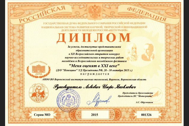 С 28 по 30 октября Общероссийской общественной организацией «Национальная система развития научной, творческой и инновационной деятельности молодежи России «Интеграция» проводился всероссийский молодежный фестиваль "Меня оценят в 21 веке". Данное мероприятие состоялось при участии ведущих образовательных организаций высшего профессионального образования и содействии Государственной Думы Федерального Собрания Российской Федерации, Управления делами Президента Российской Федерации, Московской Патриархии, Министерства образования и науки Российской Федерации, Федерального космического агентства, Министерства транспорта Российской Федерации, Министерства сельского хозяйства Российской Федерации, РАО, РАН, РАЕН, РИА.