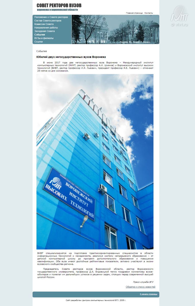 Вручение сертификатов студентам международного образовательного центраСовет ректоров вузов Воронежской области поздравил коллектив ВИВТ с 25-летием!