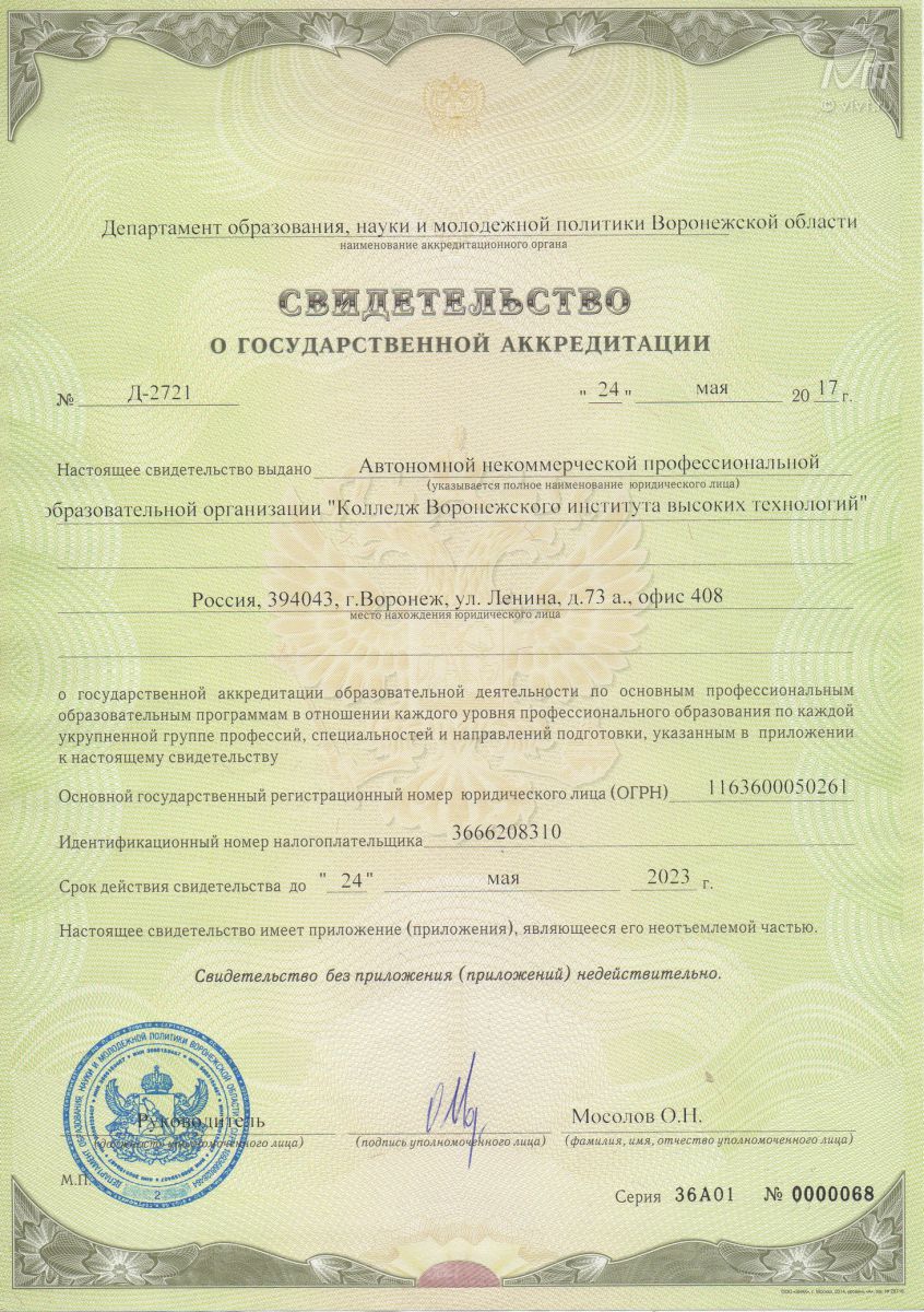 Колледж Воронежского института высоких технологий успешно прошел процедуру государственной аккредитации